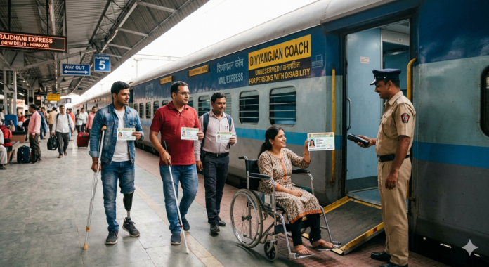 ಭಾರತೀಯ ರೈಲ್ವೆಯು ಸಮಗ್ರ ಪ್ರಯಾಣ ಮತ್ತು ಸಮರ್ಪಕ ಆಸನ ಲಭ್ಯತೆ ಖಚಿತಪಡಿಸಿಕೊಳ್ಳಲು, ಮಾನ್ಯವಾದ ವಿಶಿಷ್ಟ ದಿವ್ಯಾಂಗ ಗುರುತಿನ ಚೀಟಿ (ಯುಡಿಐಡಿ) ಕಾರ್ಡ್ ಹೊಂದಿರುವ ವಿಶೇಷಚೇತನ ವ್ಯಕ್ತಿ (ಪಿಡಬ್ಲ್ಯೂಡಿ) ಗಳು ಮೇಲ್/ಎಕ್ಸ್ಪ್ರೆಸ್ ರೈಲುಗಳಲ್ಲಿ ವಿಶೇಷಚೇತನರಿಗೆ ಮೀಸಲಿಡಲಾದ ಕಾಯ್ದಿರಿಸದ ಬೋಗಿಗಳಲ್ಲಿ ಪ್ರಯಾಣಿಸಲು ಅನುಮತಿ ನೀಡಲಾಗುವುದು ಎಂದು ಸ್ಪಷ್ಟಪಡಿಸಿದೆ.
